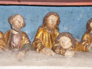 Ich mag die Darstellung der Abendmahlsfeier in der Predella des Marienaltars sehr und in ihr besonders die beiden Figuren von Jesus und Johannes. Jesus hat seinen Arm um Johannes Schulter gelegt. Kurz vorher hat er seinen Jüngern offenbart, dass ihn einer aus der Runde verraten wird. Beim Betrachten der anderen Jünger kann man viele Emotionen erkennen: Betroffenheit, Zweifel, Unsicherheit, Neid, Entsetzen. Doch Johannes fühlt sich durch die Nähe Jesu sicher und getröstet.