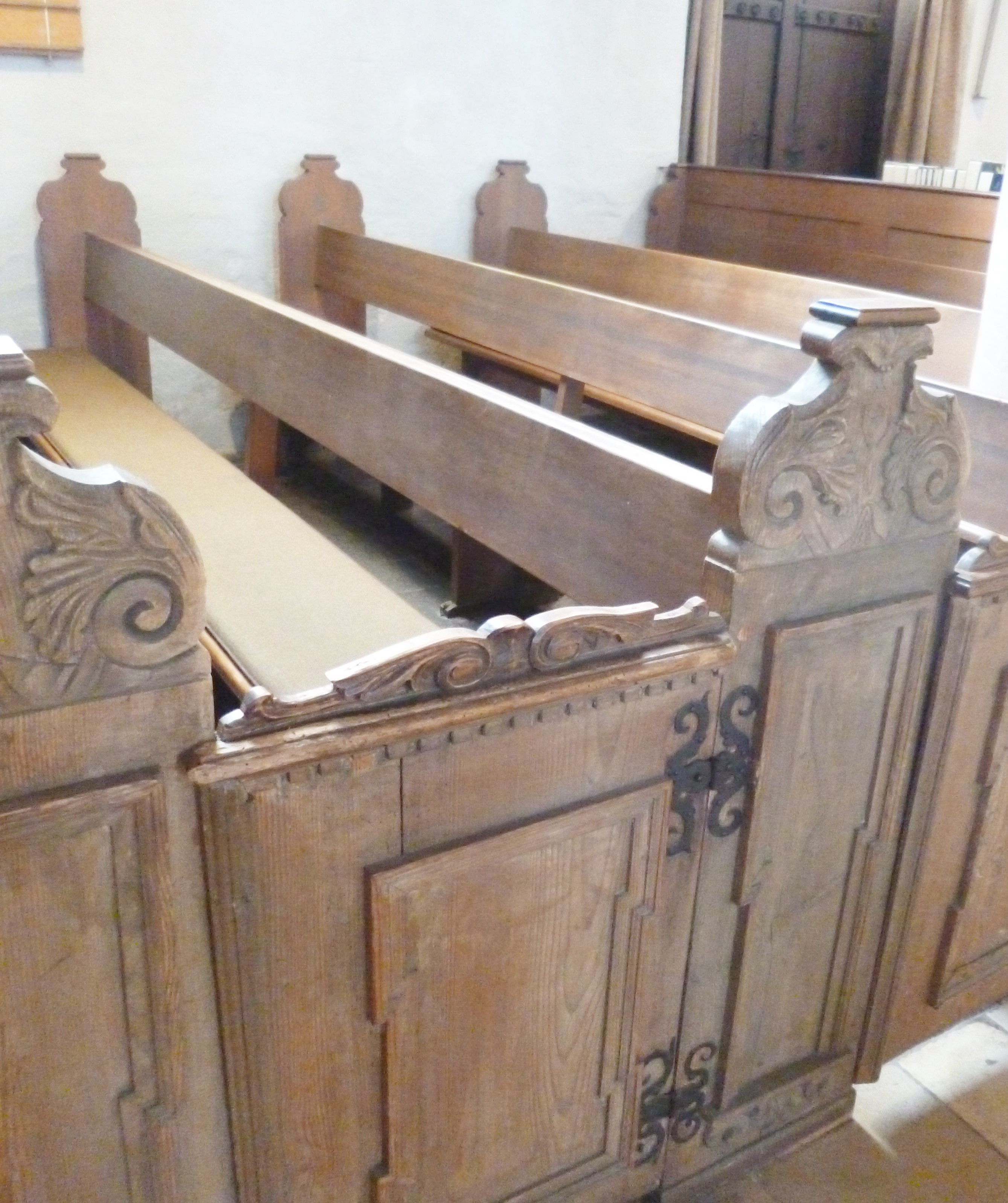 Sie müssen wohl viel kleiner gewesen sein, als diese Sitzbänke geschreinert worden sind, denn die Sitzfläche ist für mich sehr kurz. Trotzdem möchte ich diese Bänke nicht durch bequemere Sitzmöglichkeiten tauschen.