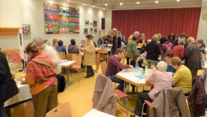 Dass sich die Teilnehmer immer wohlfühlen beginnt schon damit, dass der Tisch immer einladend und jahreszeitlich passend dekoriert ist. Seit dem Umbau des Gemeindehauses bildet die Bücherei ein ansprechendes Ambiente für das gemütliche Beisammensein.