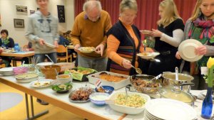 Im Vorbereitungsheft finden sich immer auch Rezepte mit Gerichten aus dem gastgebenden Land, die dann vom Vorbereitungsteam gekocht und angeboten werden. Bisweilen ist es eine Herausforderung, benötigte Zutaten und Gewürze zu finden und auch das Warmhalten der Speisen ist nicht immer einfach, soll doch die Bewirtung gleich nach dem Gottesdienst beginnen. Manch ein Rezept hat auf diesem Wege aber schon Eingang in den sonst üblichen Speiseplan bekommen. Und die Besucher konnten im Laufe der Jahre schon die unterschiedlichsten Länder kulinarisch erkunden, seien es Malaysia, die Bahamas, Chile, Frankreich, Kuba, Ägypten und noch viele, viele mehr.