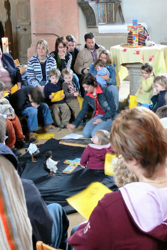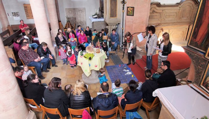 Die Kukiki schließt an die Taufe an und ist eine Gottesdienstform für die ganze Familie. Sie macht die Kleinsten mit dem Kirchenraum und der Gemeinde vertraut.