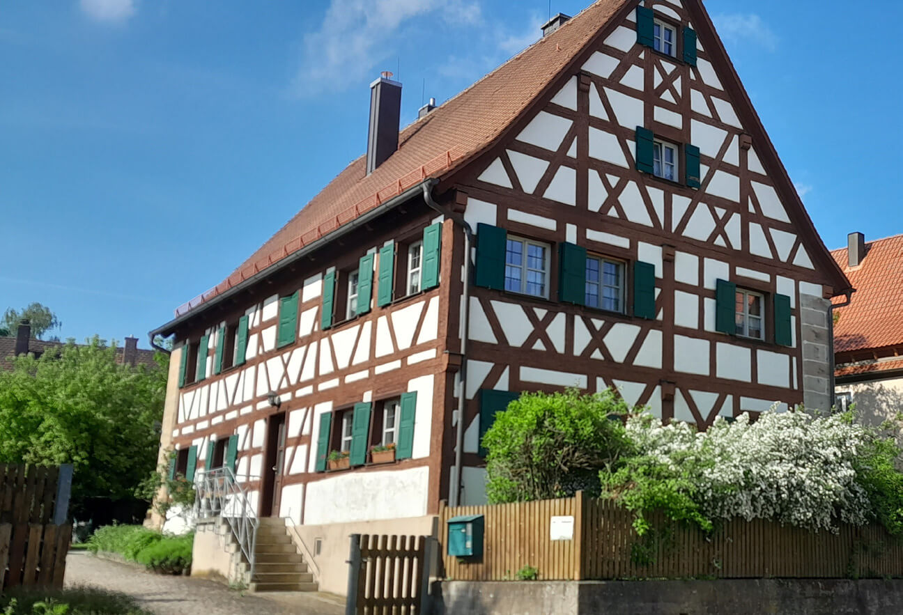 Wunderschön sind die Pfarrhäuser in unserer Region „Mittleres Pegnitztal“, links das Pfarrhaus in Reichenschwand direkt neben der Albanuskirche, in der Mitte das Pfarrhaus in Schönberg, ebenfalls mit wunderbar renoviertem Fachwerk oder auch das Ottensooser Pfarrhaus aus Sandstein mit Sattelwalmdach und dem großen Garten mit Scheune