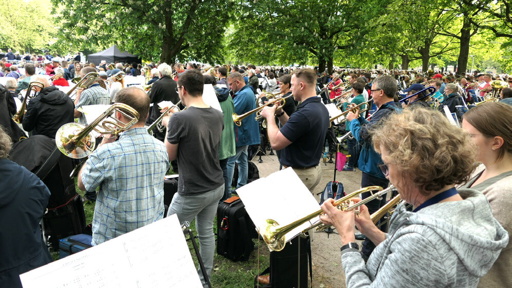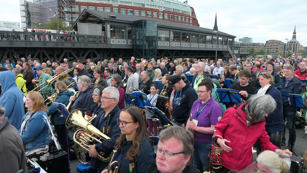 Loben, preisen, danken mit den Instrumenten verbindet – und führt mit 15.000 Bläsern zu einem einmaligen Klangerlebnis. Wir haben Hamburg mit unseren Trompeten, Posaunen, Tuben und gemeinsamen Singen zum Klingen und Schwingen gebracht. Gefreut haben wir uns dabei vor allem auch über die vielen Begegnungen mit anderen Bläserinnen und Bläsern. Natürlich haben wir auch die Highlights Hamburgs mit seiner Elbphilharmonie, dem größten Hafen Deutschlands und dem beeindruckenden Rathaus kennengelernt. Es ist eine Freude und Geschenk bei einem der größten Bläsertreffen der Welt dabei gewesen zu sein.